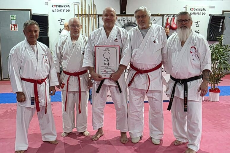 Dan-Vorbereitungslehrgang Koshinkan beim KD Bad Salzuflen Am 10. Mai fand ein Dan-Vorbereitungslehrgang der Stilrichtung Koshinkan unter der Leitung von Peter Falk (5. Dan), Stilrichtungs- und Prüfungsreferent Stilrichtung Koshinkan und Frank Herholt (5. Dan), Bundesstilrichtungskoordinator Stilrichtung Koshinkan, im Landesstützpunkt Koshinkan in Bad