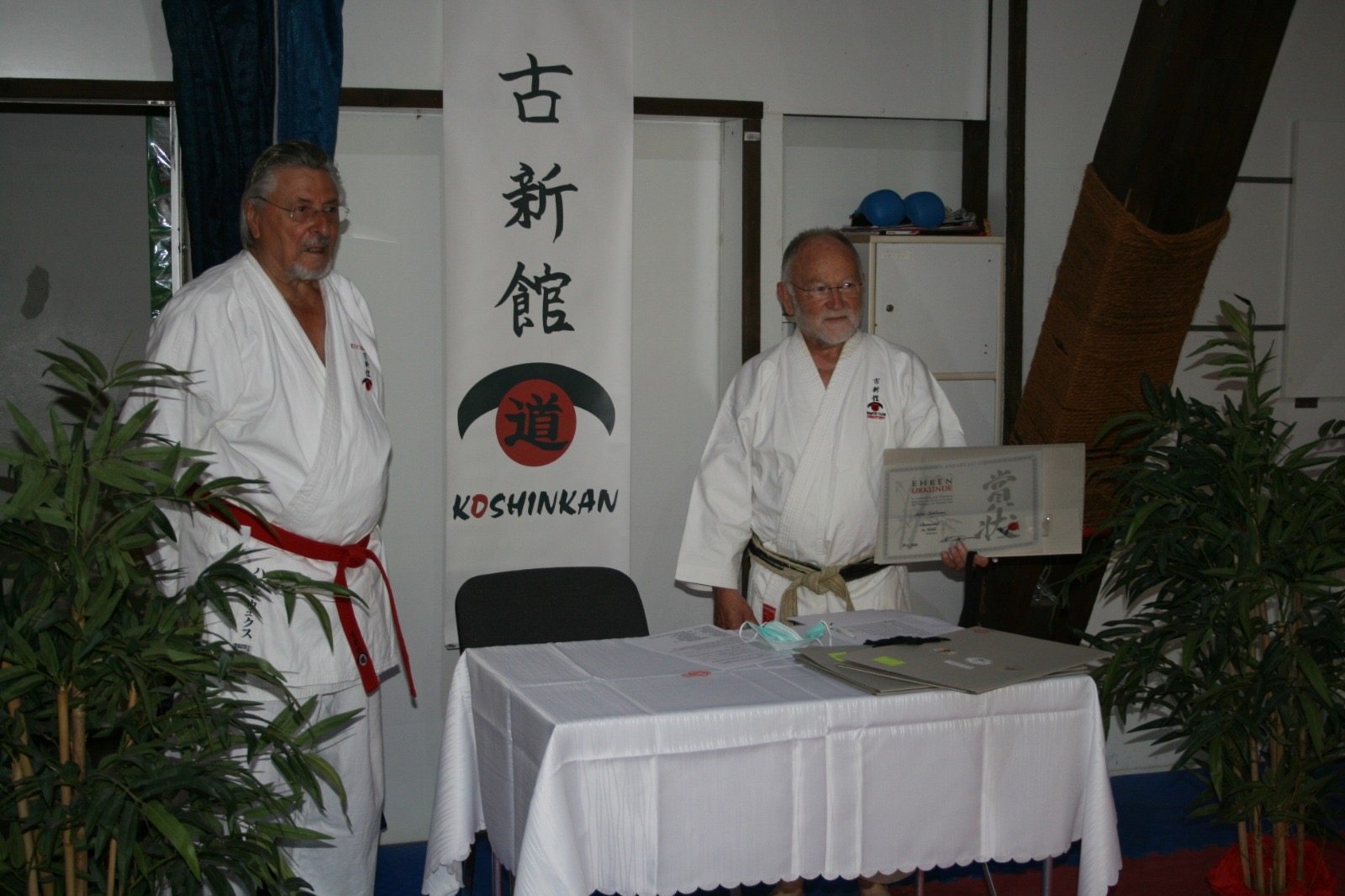 Anlässlich der ganz besonderen DAN-Prüfungen unter Corona-Bedingungen erfuhr der Club eine nicht alltägliche Ehrung: